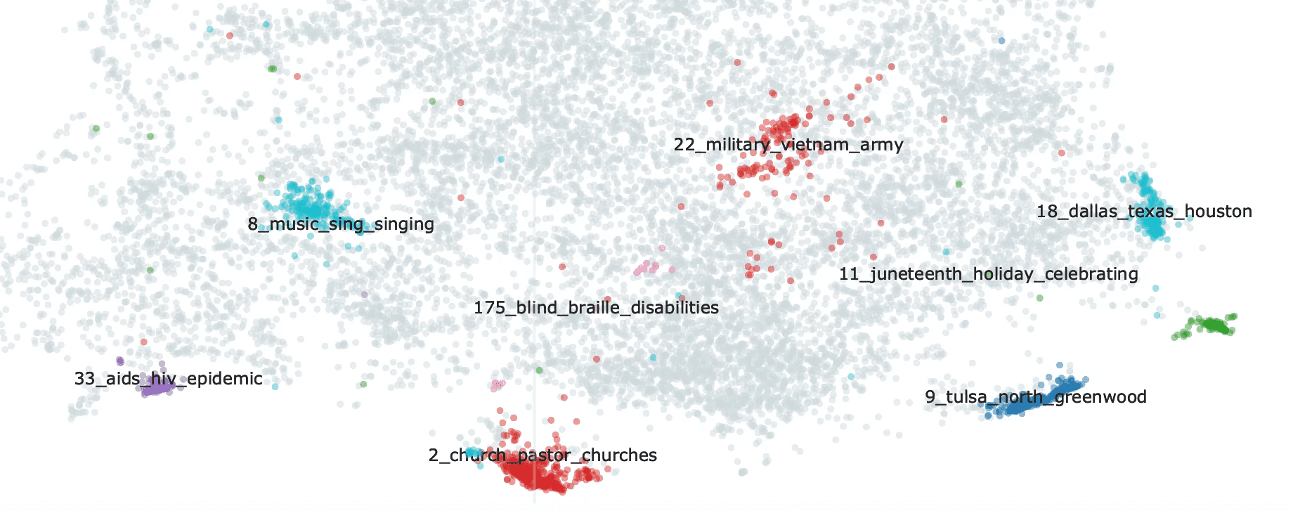 We adapted several computational techniques to interconnect the project's unique and varied stories, transforming 420 hours of interviews into 20,000 clips connected by topic and theme. These innovations revealed the archive's latent structure and allowed our team to more closely reflect the agendas of interviewees in our research and curatorial choices.