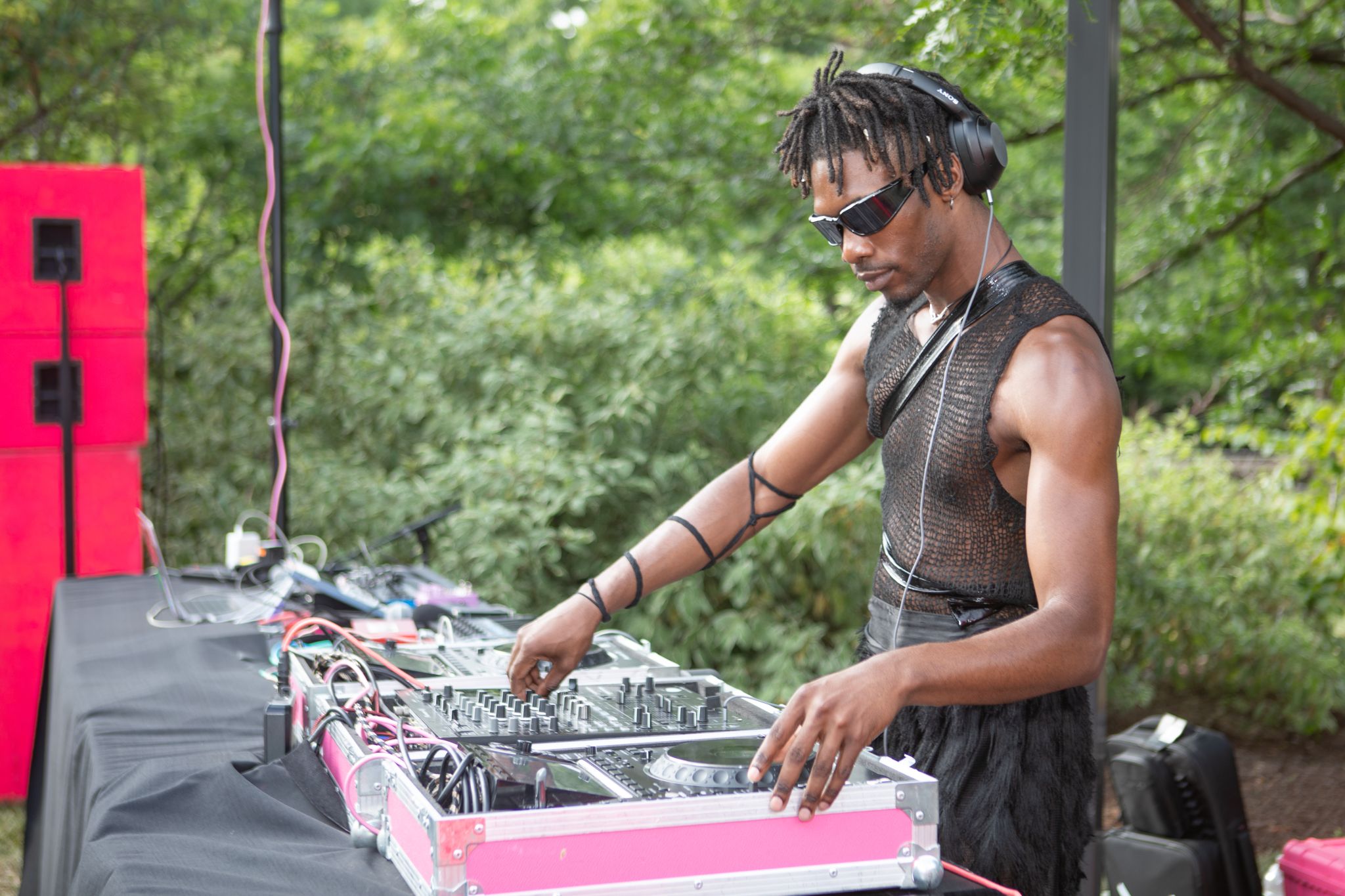 Viper (DJ, pictured top) samples oral history interviews at a celebration of Black queer elders' stories at Weeksville Heritage Center. Summer 2025.
